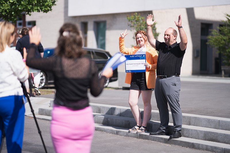 De mange forskere og undervisere, der er mødt op til ingeniørdimissionerne, deler også ud af rosende ord, håndtryk, kram og gode råd.