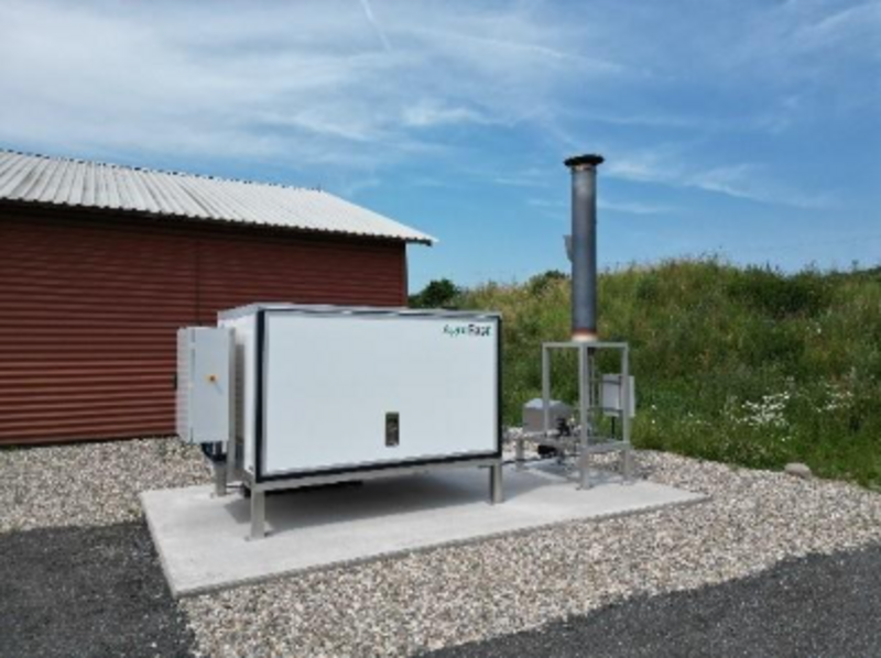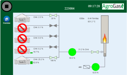 The firm AgroGas has developed and markets a flaring system, where gases from covered slurry tanks are pumped out and transferred to a flaring unit with combustion of methane into carbon dioxide. The gases from the covered slurry tanks are humid, and therefore a condensation well is placed in the pipes between the slurry tanks and the flaring unit. Measurements have shown that very little ammonia reach the feed gas to the flare, indicating that most the ammonia is trapped in the water in the condensation well. The condensate is recycled to the slurry tanks. The project will study the efficiency of this system and how it can be improved.