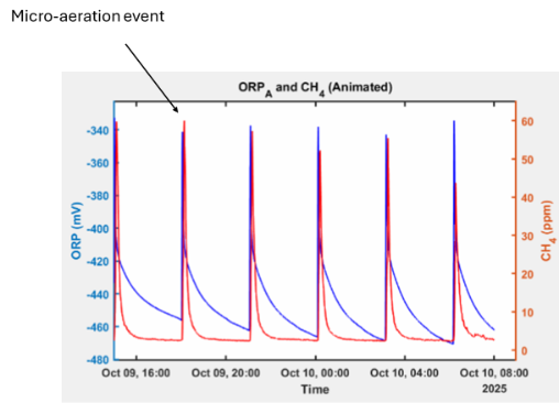 Micro-aeration of manure can reduce the production of methane due to methanogenic inhibition. This technology has shown promising results, but we need a better understanding of the process and how it can be optimized with respect to dosing technology, frequency of dosing and intensity. Furthermore, models for predicting mitigation needs to be calibrated and laboratory and pilot scale experiments can help with providing mass transfer coefficients for modelling.